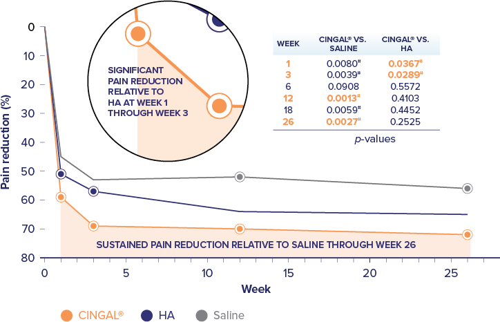 Cingal® was superior to saline in providing significant pain reduction through 12 weeks post treatment.